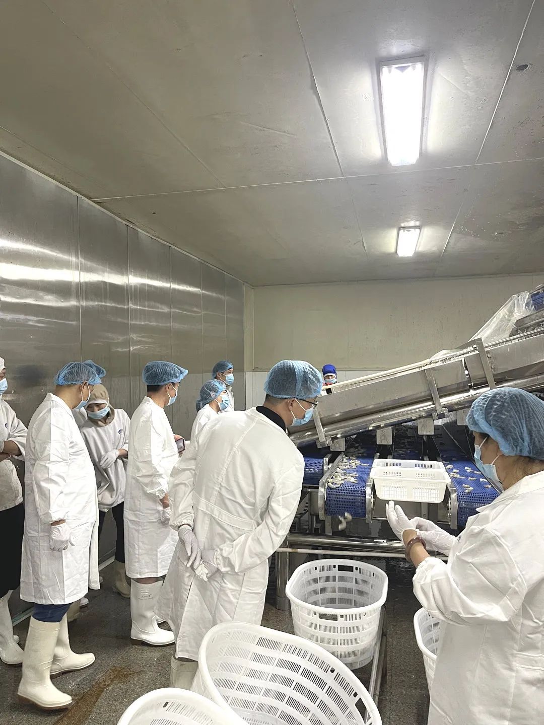 7月31日,考察團(tuán)針對良之隆廣受歡迎的爆款產(chǎn)品“東海扁蟹”進(jìn)行了工廠考察,分別參觀了加工蟹肉、蟹身、整蟹的三家工廠。通過了解得知不同部位的分批加工能將扁蟹這一優(yōu)質(zhì)資源的利用達(dá)到最大化,也可以滿足不用客戶對蟹的精準(zhǔn)需求。